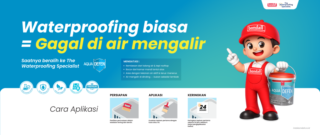 Dengan Australian Standard Quality, Bondall dipercaya sebagai cat pelapis anti bocor terbaik untuk hunian, bangunan komersial, hingga proyek konstruksi profesional. Bondall menghadirkan waterproofing solution berkualitas tinggi untuk melindungi bangunan dari kebocoran dan rembesan air.
